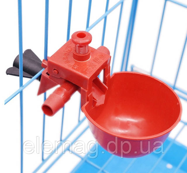 Поїлка чашкова для всіх видів птиці (червона) 9,5 мм для домашнього і комерційного використання курячих птахоферм.